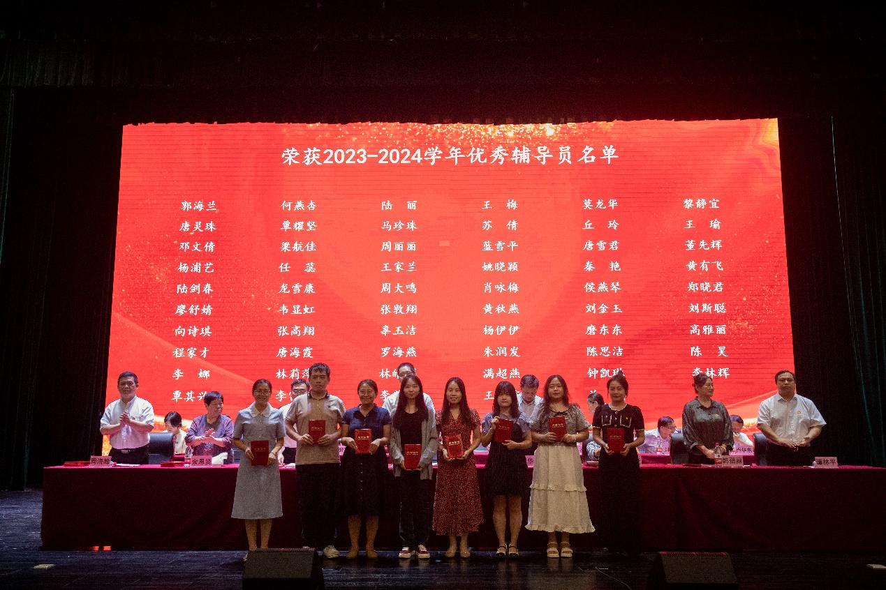 在本次表彰大会中,马克思主义学院11名教师受到表彰。其中,容迪、王泌、莫宏媛、唐娜、许婧、潘小鸭、黄开展、盘秀兰等8名同志被评为“2023年度先进工作者”,陆剑春、龙雪康、刘斯聪等3名同志荣获“2023-2024 学年优秀辅导员”称号。