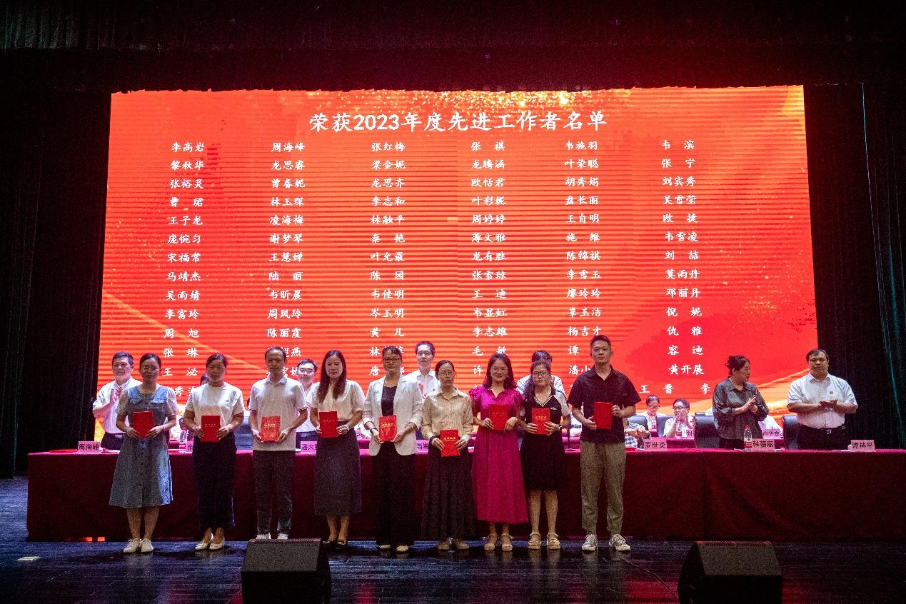 2023年度先进工作者:左起三位分别为许婧、潘小鸭、黄开展,左五为盘秀兰