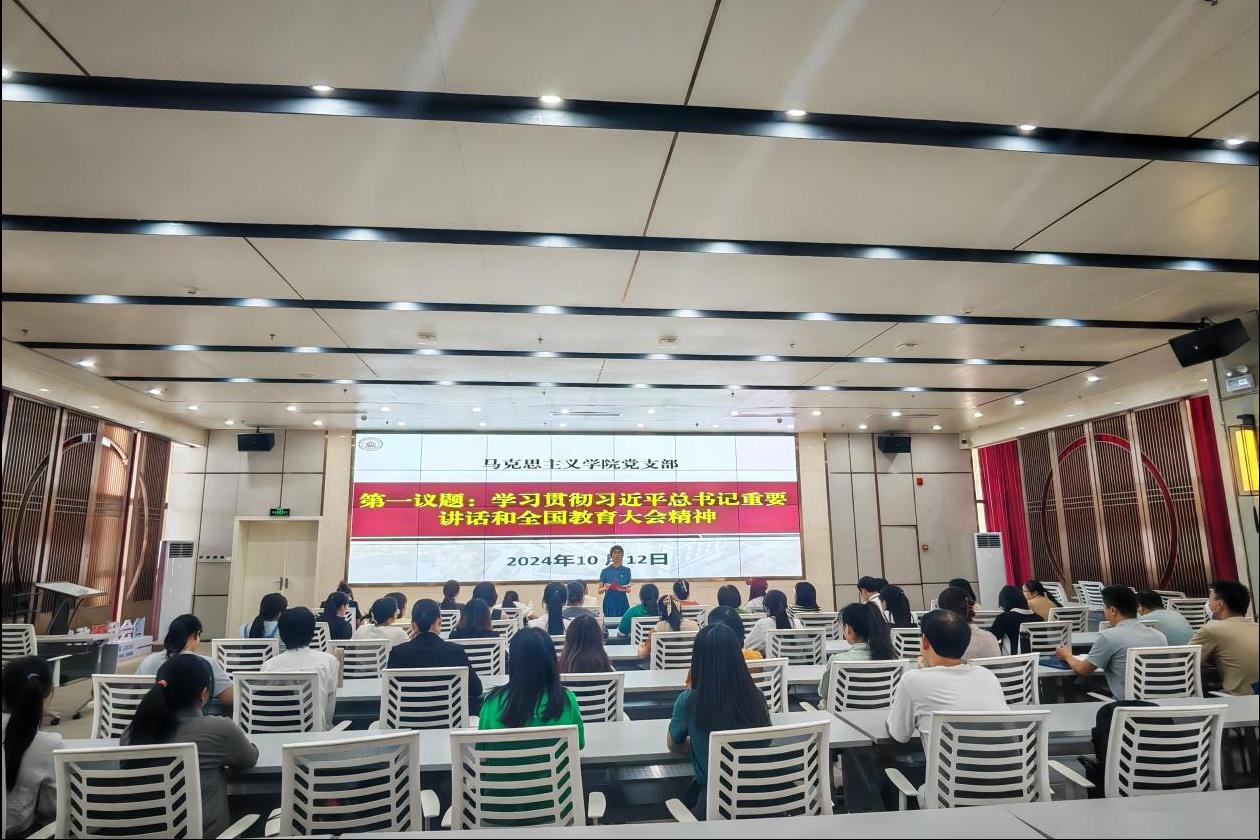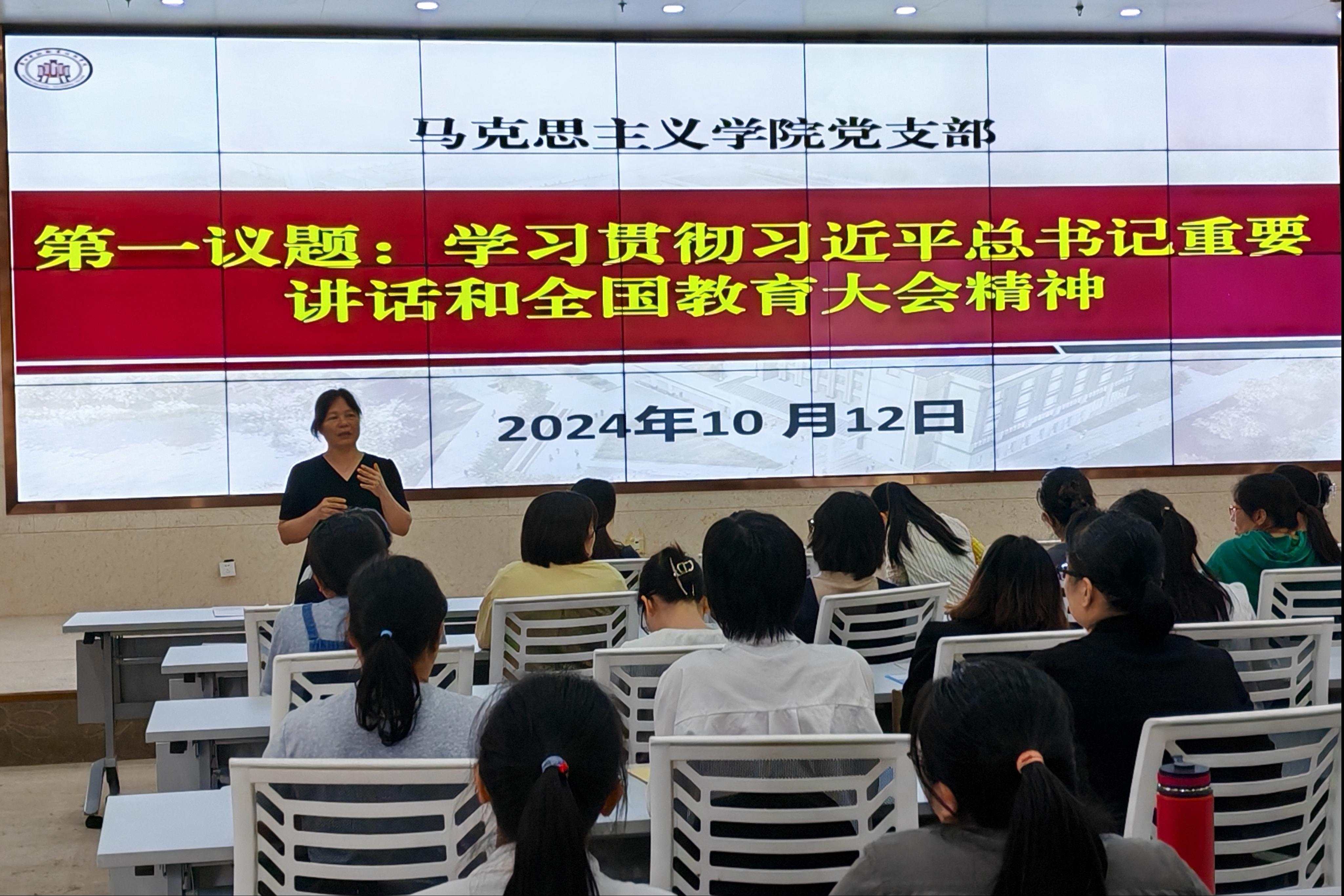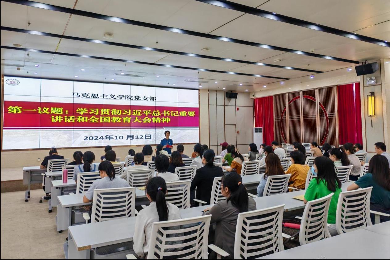 2024年10月12日,为深入学习贯彻习近平总书记重要讲话和全国教育大会精神,我院党支部在西校区道德大讲堂组织召开集体学习,党支部全体党员同志参加会议。本次会议由学院党支部书记、院长兰晓黎主持。