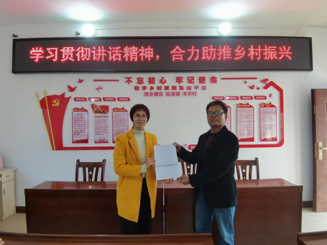 在丰平村村委,联建双方交换签订的《合作共建实践基地协议》并举行了合作共建揭牌仪式。曾广源副部长对共建活动给予了高度肯定,希望双方以此为契机,扎实开展基层党建活动,实现优势互补、共同发展。