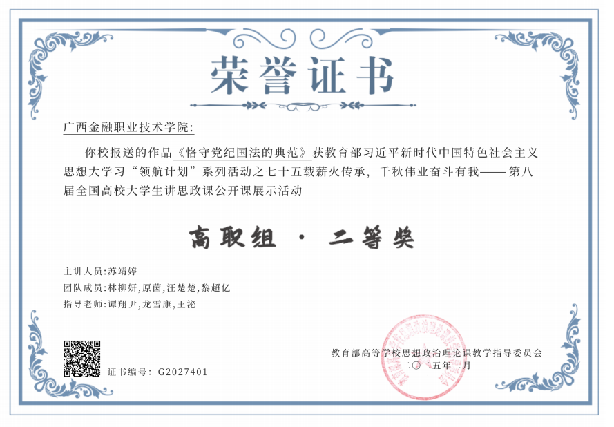 我校作品以“党纪国法”为主线,融合党史教育、情景演绎与理论阐释,生动展现中国共产党纪律建设的百年传承,深入诠释新时代青年“守纪律、讲规矩”的使命担当,以扎实的理论功底、创新的教学设计和真挚的情感表达,在全国舞台上彰显了我校“学思用贯通、知信行统一”的育人成效。作品既是学校推进思政课改革的标志性成果,也是师生践行“为党育人、为国育才”使命的生动实践。