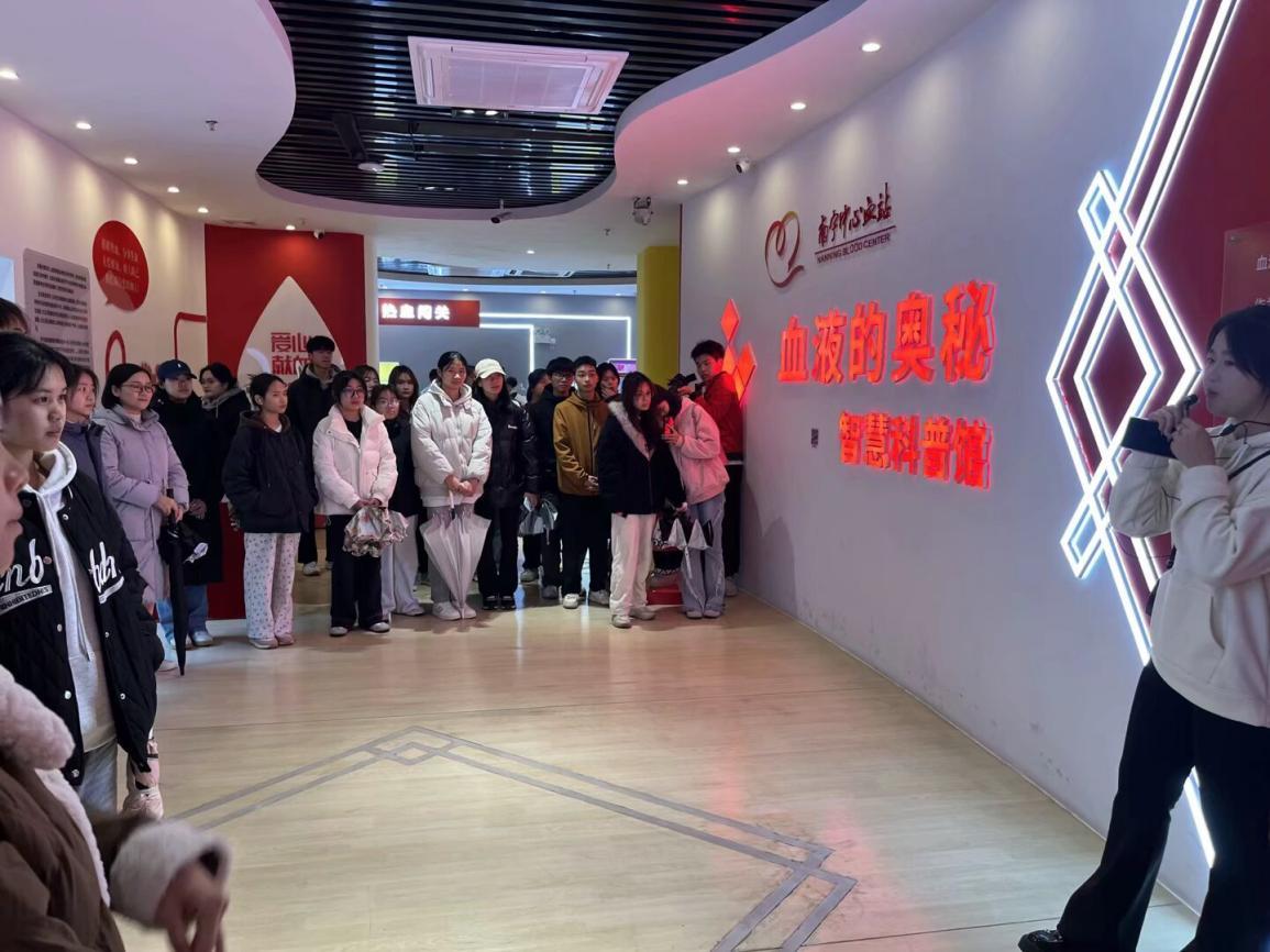 随后,我校师生先后参观了南宁中心血站“血液的奥秘”智慧科普馆、采血科、成分制备科、检验科、供血科等主题展区,深入了解献血全流程、血液分离制备、血液检测与供应的严谨流程,深刻认识确保血液安全和质量的重要意义,从中体会到社会的文明和进步。