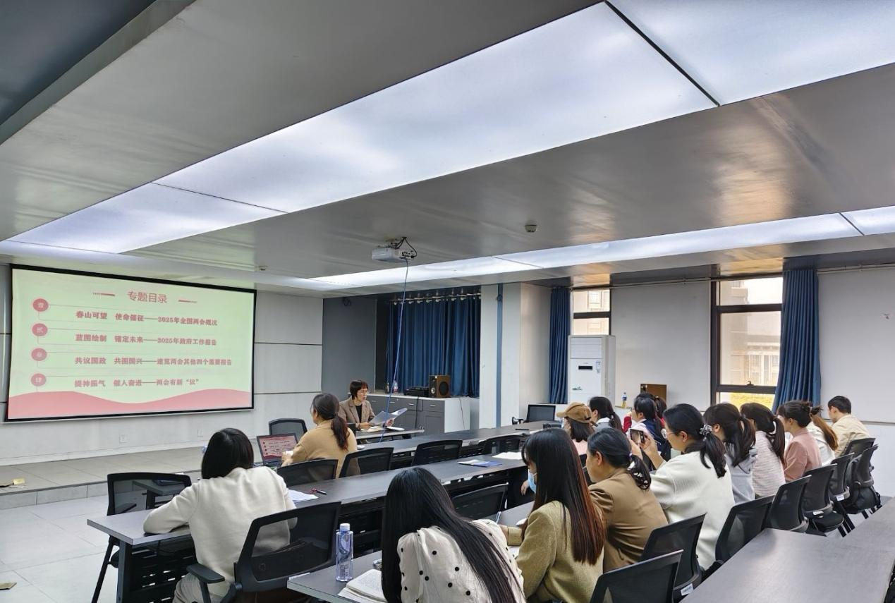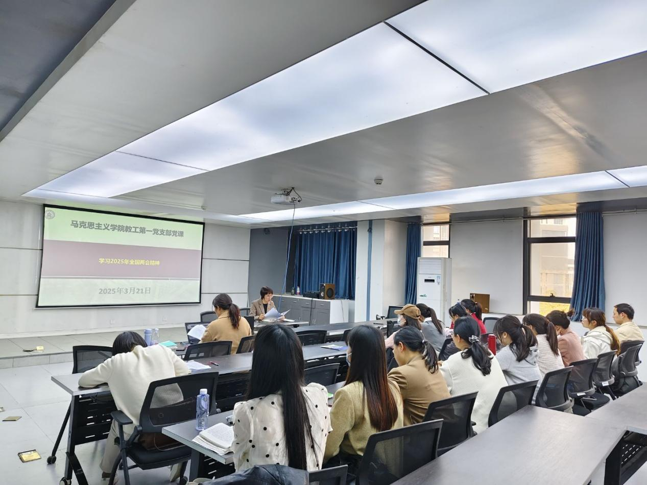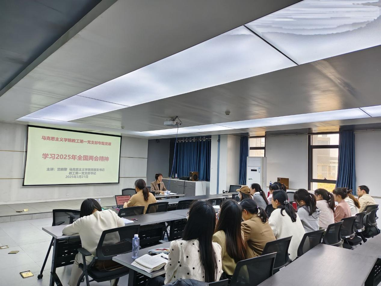 为深入学习贯彻2025年全国两会精神,进一步提升党员的政治素养和理论水平,3月21日下午,马克思主义学院教工第一党支部在行政楼412会议室组织开展专题党课活动,马克思主义学院党总支书记、教工第一党支部书记兰晓黎同志授课,支部全体党员参加学习。