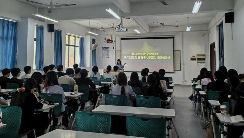 《中华民族共同体概论》课程已纳入学校“大思政课”建设总体布局,未来将持续完善“理论认知-情感认同-行为自觉”育人链条,为建设新时代中国特色社会主义壮美广西培育具有深厚家国情怀的青年人才。