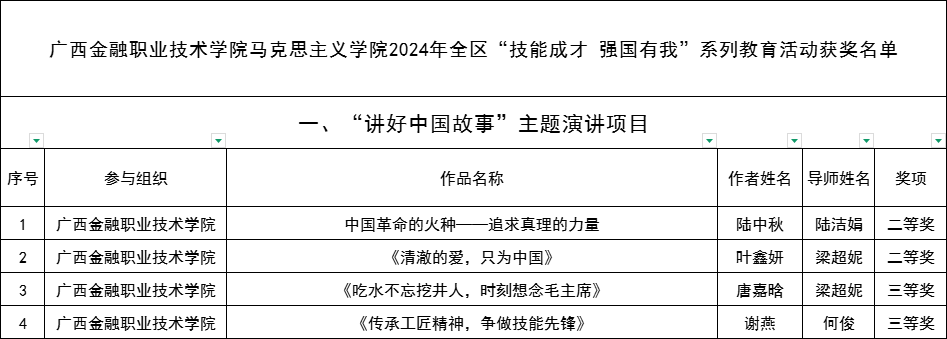 以上截图为马克思主义学院“技能成才 强国有我”获奖名单