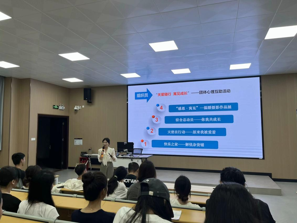 覃梅芳副教授通过理论讲解、案例剖析、情景模拟等形式展开培训。她重点阐述了心理委员在朋辈心理帮扶中的先锋模范作用,详细讲解了大学生常见心理问题的识别与应对策略,并分享了心理班会组织策划的技巧,为心理委员明确了工作职责与方法。