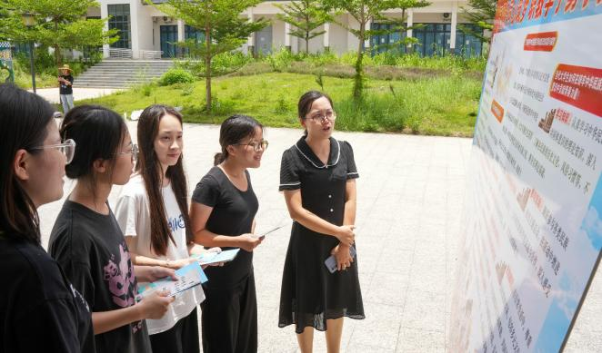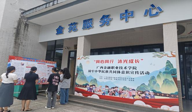 在活动现场,党员教师结合“铸牢中华民族共同体意识”主题展板,向同学们深入讲解了中华民族共同体意识的具体内涵、广西在铸牢中华民族共同体意识的实践与探索,以及当代大学生如何在铸牢中华民族共同体意识中贡献青春力量等多方面的内容,引导同学们加强对民族团结的认识,促进不同民族同学之间的交流与合作,进一步增强同学们的责任感、使命感及对中华民族的认同感。