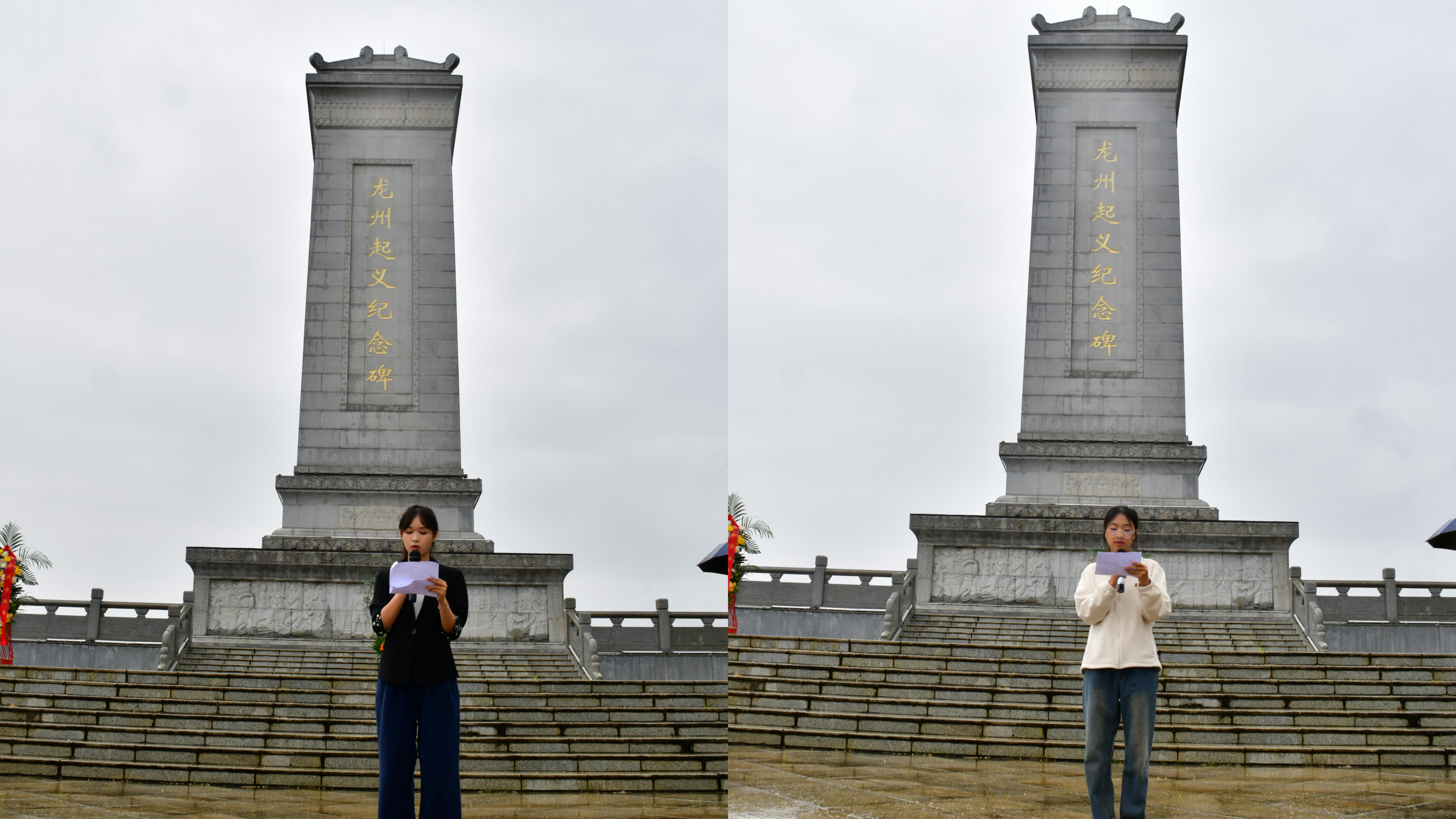 马克思主义学院副院长韦思密在现场致辞,她强调,在红色地标上重温历史,是为了更好地汲取奋进力量,激励青年学子肩负起时代重任。马克思主义学院教师季园月围绕龙州起义的光辉历史开展现场教学,生动讲述那段革命岁月。学生代表的感言则道出了同龄人的心声,表达了继承先烈遗志、矢志报国的坚定决心。