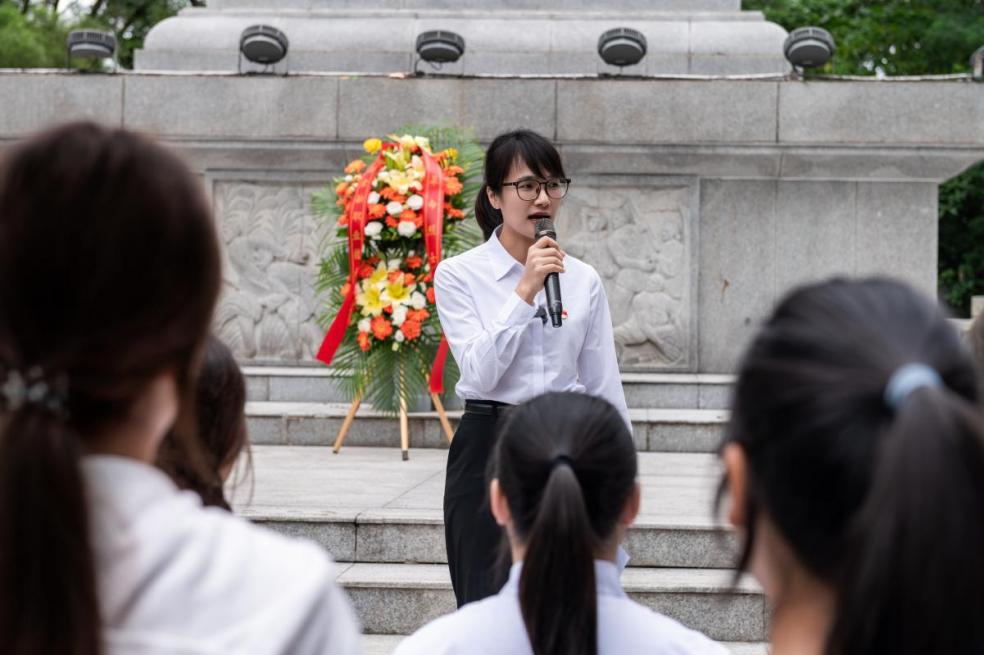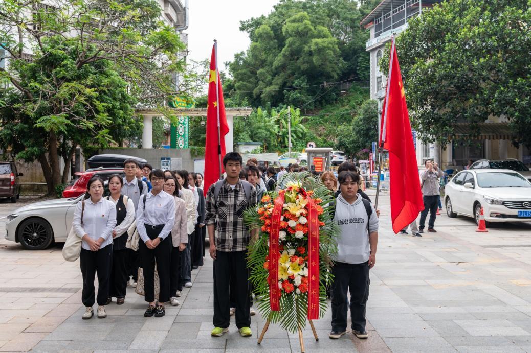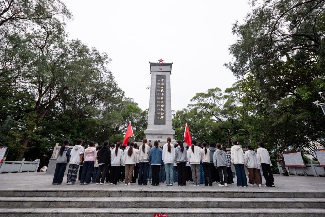 上午,全体师生在中越人民革命烈士纪念碑前举行庄严纪念仪式。师生方阵齐唱国歌后,学生代表敬献花圈,全体默哀一分钟,表达对革命先烈的深切缅怀与崇高敬意。随后,师生缓步绕行纪念碑,瞻仰碑文与浮雕,铭记先烈为民族独立和人民解放所作出的巨大牺牲,追忆先烈们的丰功伟绩。
