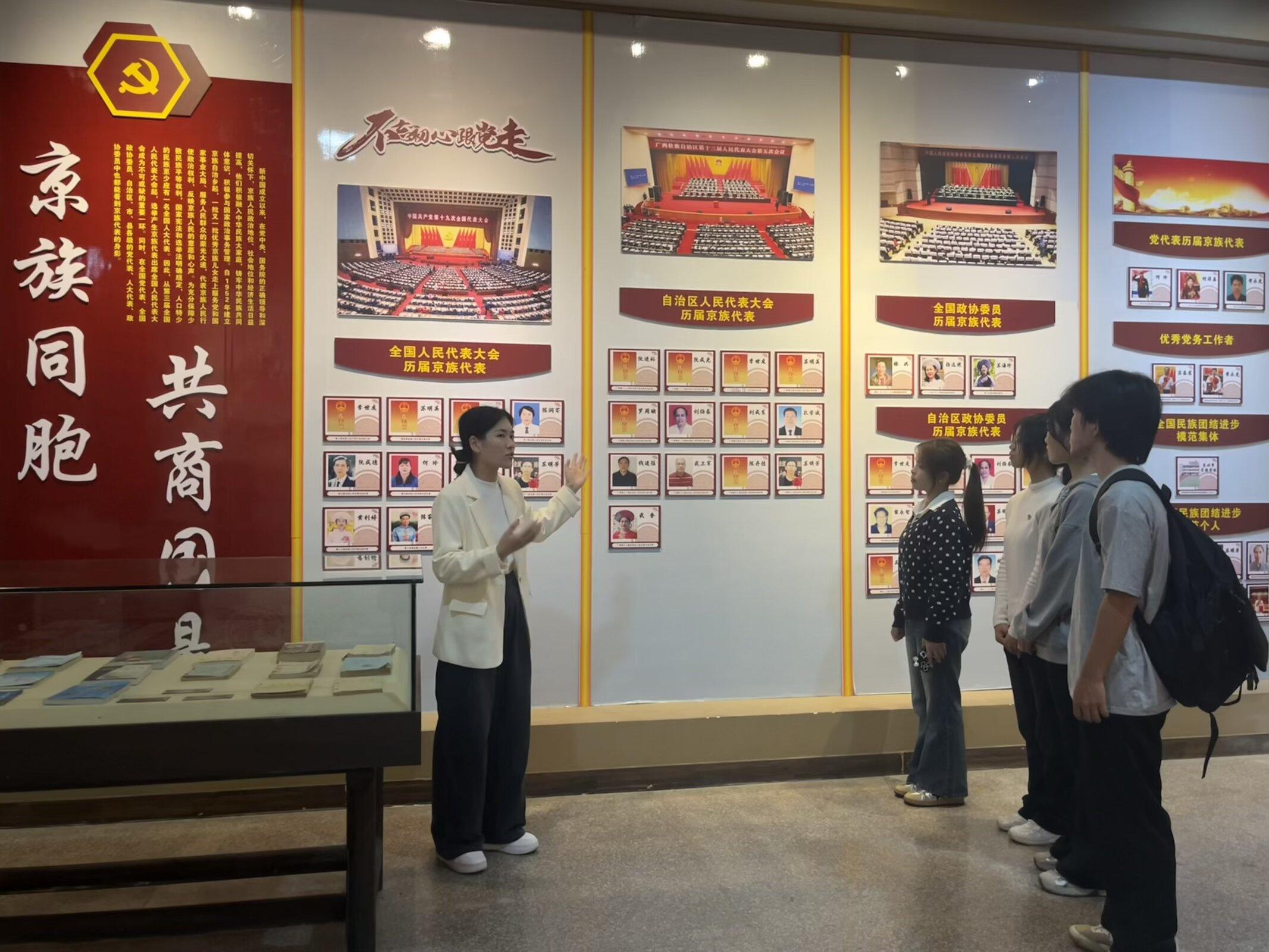 活动的最后一站东兴京族博物馆。师生们通过参观文物、图片和影像资料,了解京族历史文化、生活习俗及其在守边固边中的作用。独特的民族文化和团结奋进的故事,让师生对中华民族多元一体格局有了更深刻的认识,增强了文化认同与家国情怀,完成了一次民族团结与国防教育的“沉浸式打卡”。