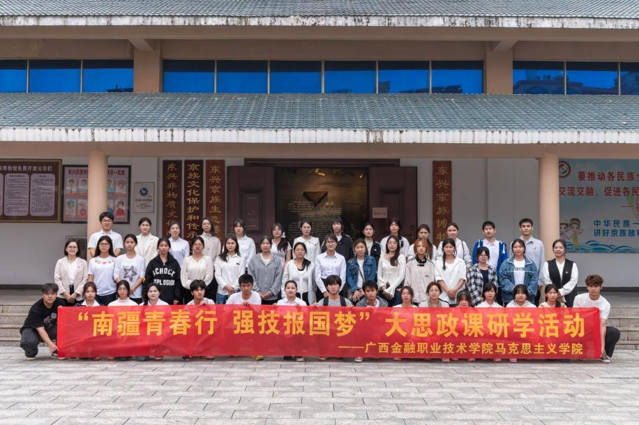 为深入学习贯彻习近平新时代中国特色社会主义思想,落实立德树人根本任务,激发青年学生爱国情怀与报国志向,2025年11月1日,我校马克思主义学院13名教师带领金融学院、投资与保险学院35名大一新生,赴东兴开展“南疆青春行 强技报国梦”大思政课研学活动。师生沿着“烈士纪念碑—五号界碑—京族博物馆”一线,完成了一堂“沉浸式”大思政课。