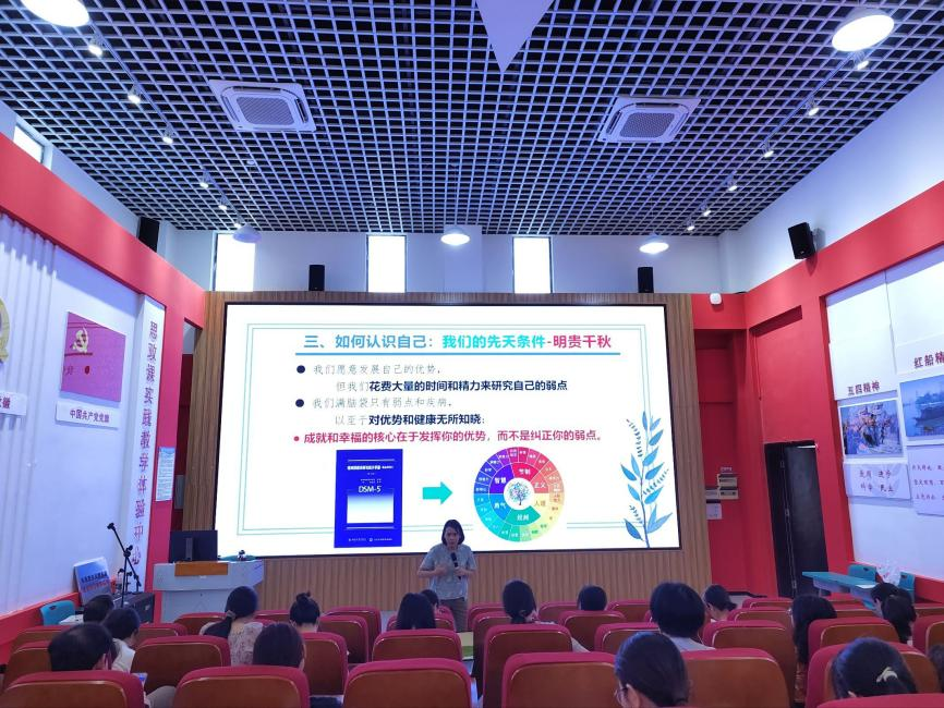 张琼副教授以“《大学生心理健康教育》教学设计与课程思政思考”为主题,以“知人者智 自知者明——自我意识”章节为例进行了深入浅出的讲解。她结合自身教学实践,分享了课程思政改革的所见、所思、所做,聚焦《大学生心理健康教育》第三单元讲“品格优势与美德”展示了精心设计的教学方案,并就教学实践中的特色亮点进行了详细介绍。