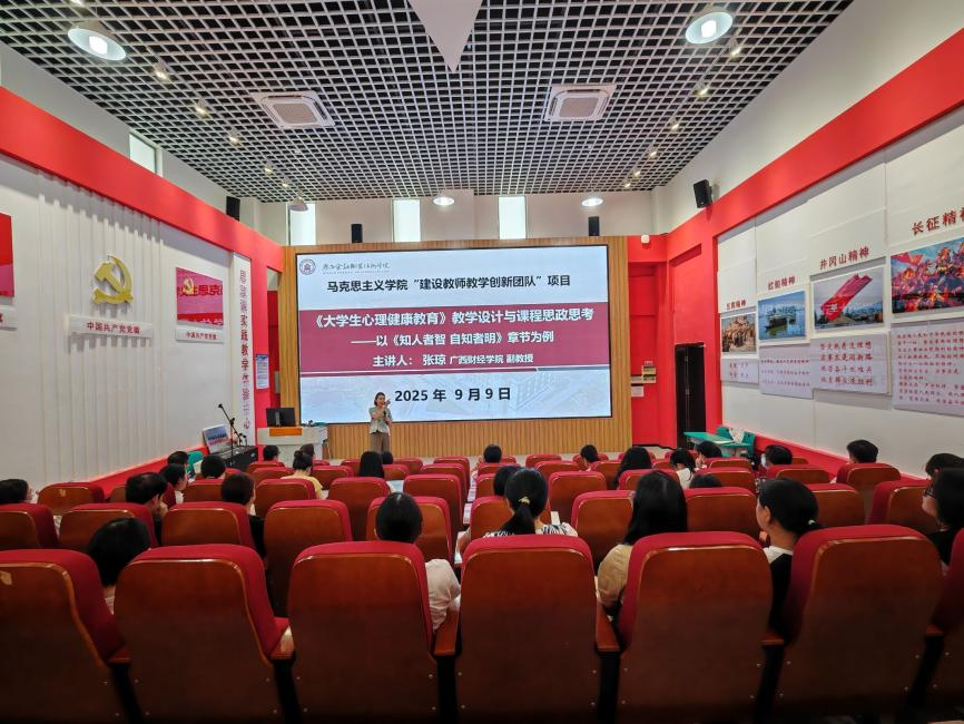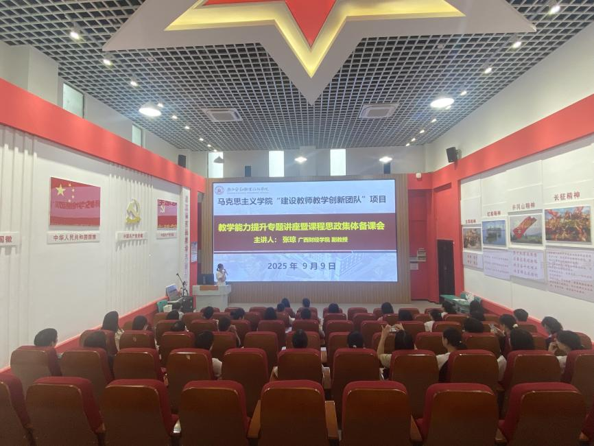 为深入贯彻落实习近平总书记关于思政课建设的重要指示精神,推进大中小学思政课一体化建设,提升教师专业化水平,9月9日,马克思主义学院举办了教学能力提升专题讲座暨课程思政集体备课会。本次活动是学院推进“双高”项目“教师教学创新团队”建设的重要举措,特邀广西财经学院张琼副教授作专题辅导报告。