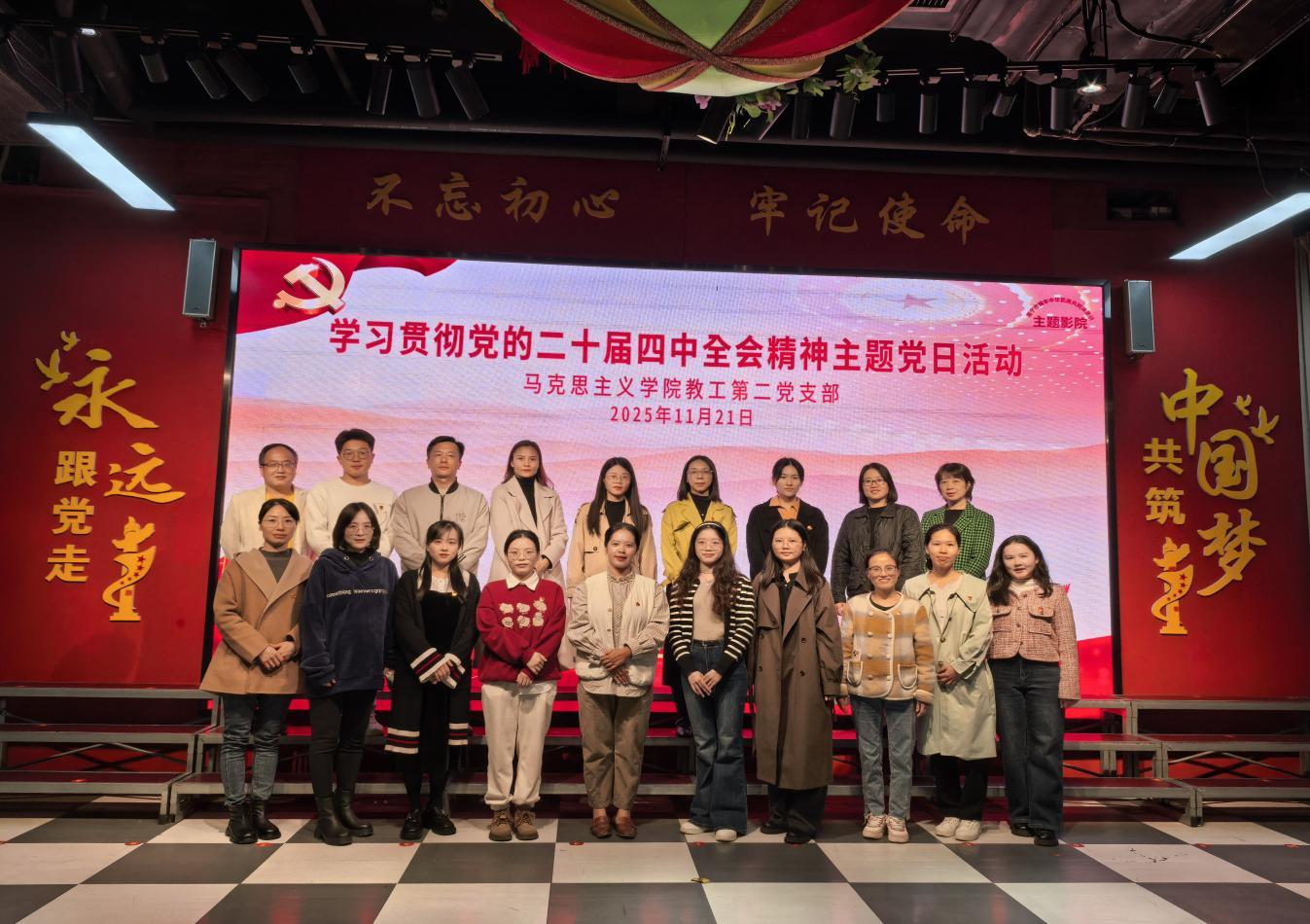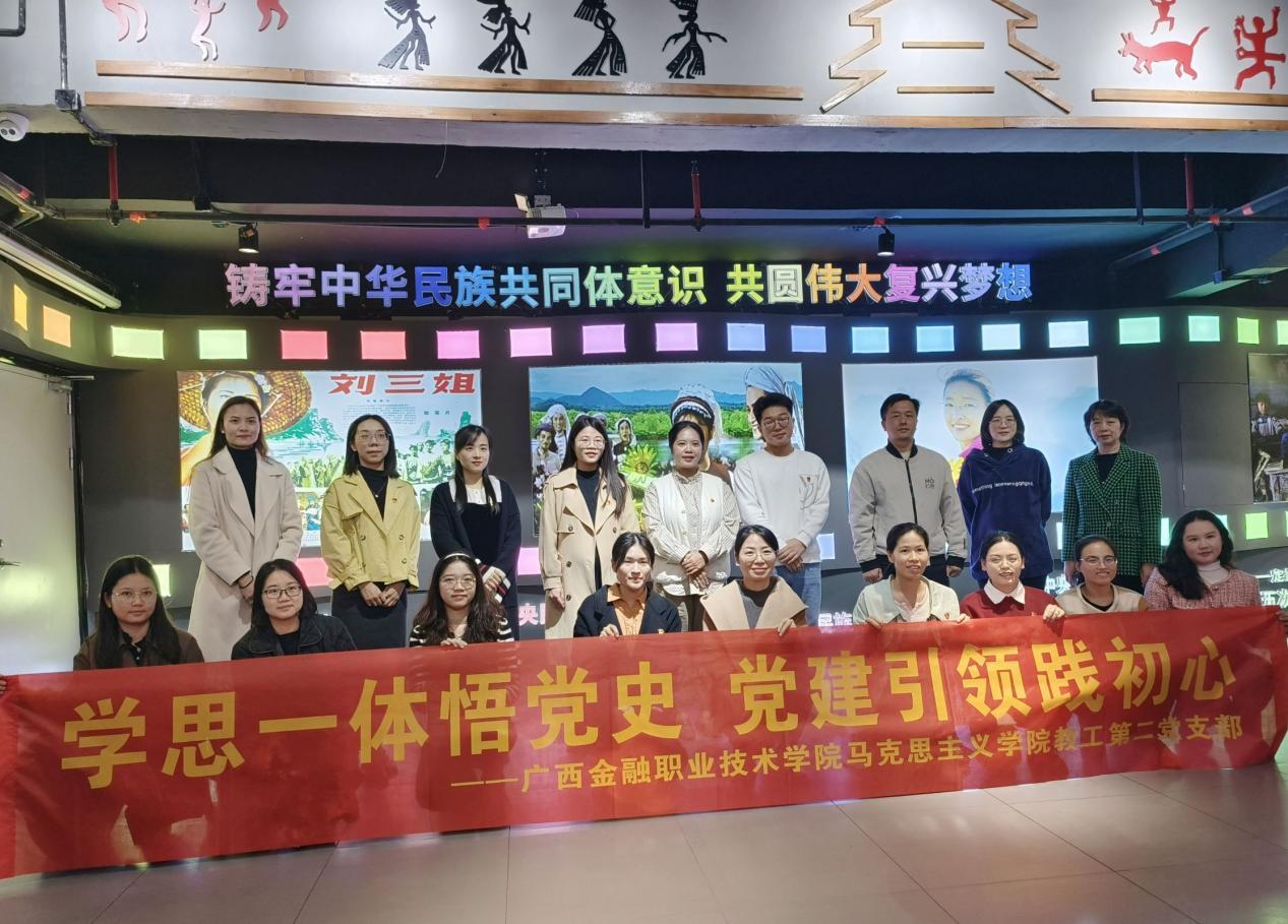 为深入推进党史学习教育常态化长效化,进一步增强党员教师的理想信念与使命担当,2025年11月21日,马克思主义学院教工第二党支部组织党员教师前往南宁市铸牢中华民族共同体意识主题影院(电影党校),开展了一场主题鲜明、内涵丰富的“学思一体悟党史 党建引领践初心”主题党日活动。活动通过沉浸式学习教育、情景体验、艺术共鸣等多种形式,引导党员教师深刻感悟党的奋斗历程,汲取精神力量,筑牢信仰之基。