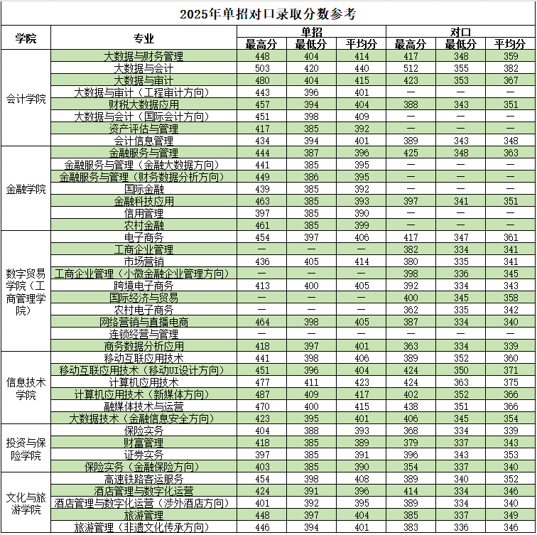 2025年单招对口录取分数线参考